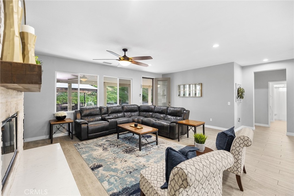 Beautifully updated single-story home located in morning Star Ranch offering 2,740 sq ft, 4 bedrooms, and 3 bathrooms on an oversized 14,375 sq ft lot with no rear neighbors over looking you. The backyard is designed for both relaxation and entertaining, featuring a pool and spa resurfaced in 2022 with PebbleTec and glass tile, artificial turf, stacked stone accents, a gazebo, and both attached and freestanding aluminum patio covers. Permanent LED lighting has been installed on the front and rear of the home and can be controlled by phone or WiFi, creating the perfect setting for holidays, parties, or evenings outdoors. A mounted outdoor TV area with power makes it easy to enjoy sports, movies, or music while spending time by the pool.