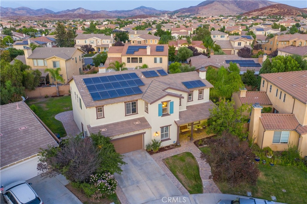 Look no further! With 5 bedrooms, 3.5 baths and almost 3200 sq ft of living space, this beautiful & spacious end of cul-de-sac home has everything you need and more! A formal living and dining room greet you as you enter through the foyer. Downstairs you'll also find a separate spacious bedroom suite with it's own full bath, along with an additional half bath for guests. The extra large kitchen and great room are welcoming and cozy, with high cathedral ceilings and lots of light. The kitchen has been upgraded with quartz counters, plenty of cabinetry, plus a large center island AND separate dining/breakfast nook that looks out to your private backyard. Upstairs features 3 spacious bedrooms AND a HUGE master suite (located privately on it's own side of the upper level), PLUS a spacious LOFT area that can be used as an office, additional bedroom, bonus room or retreat! Enjoy calm nights in your private backyard with an ENORMOUS covered patio and COMPLETE STAINLESS STEEL OUTDOOR KITCHEN, including BBQ grill, rotisserie, refrigerator & sink! Plenty of room to fit a pool, fire pit, or anything else your imagination can come up with! This gorgeous home has been freshly painted and comes with a complete solar panel system, saving you THOUSANDS of dollars per year! In addition to the DUAL A/C systems, this home is also equipped with 2 "QUIET COOL" whole-house fan systems AND a UV AIR PURIFIER SYSTEM! YOUR HOME WILL STAY FRESH AND COOL ALL YEAR LONG! Don't miss out on this one!