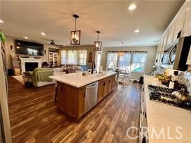 Don't miss this incredibly beautiful home just reduced and ready to make family memories for years to come. More than move in ready, large family home! Beautiful custom bathrooms for your guests and yourself! Many other custom touches throughout! Five bedroom/three bath home with stunning Boho/Farmhouse style, and with one bedroom and bathroom on the main floor. Plenty of room to entertain with a living, a dining and a great room, and oversized kitchen with room for a breakfast table as well. The kitchen boasts double ovens, a very large island with quartz countertops and custom backsplash, with dozens of cabinets. In addition, there is an extra large butler’s pantry and prep area between kitchen and dining. The large backyard with built in patio is great for those with a large group of family and friends. The side yard could easily be converted into RV parking on this large lot. The three car tandem garage has had the tandem area fully converted to a home gym, complete with its own AC unit for comfort. Once again, perfect for the health conscious family on the go, saving the precious travel time to the local gym! All bathrooms have upgraded countertops, and several with rustic cabinetry and floor to ceiling custom tile. There are more extra large storage closets upstairs with built in shelving and customization. Four of the bedrooms and the laundry is conveniently located upstairs. Oversized primary bedroom and large en-suite with large tub is the perfect sanctuary after a busy day. If all of this is not enough? This home also has paid off solar and a whole house water softener/filtration system! The seller is also willing to leave a few of the perfectly selected and fitting pieces in this stylish family home. This one is a must see for those needing lots of room for family and storage, yet not wanting to compromise on style!